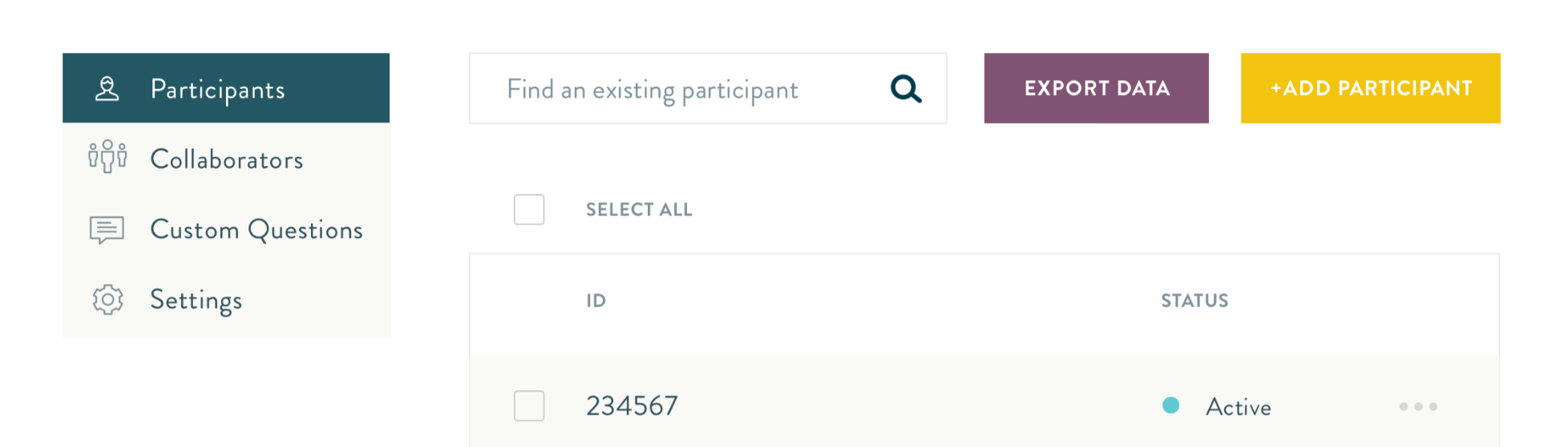 To export data from a patient or study, click the purple "Export Data" button in the top right and then choose either PDF or CSV file type.